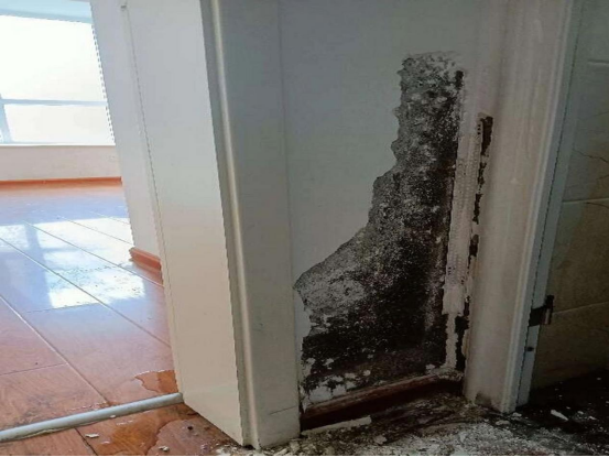 外墙渗水所致。此类情形常见于阳台、厨房或卫生间等区域。通常是由于上层防水措施不当或地基沉降造成墙体开裂,致使水分自室外经裂缝渗入室内,墙体在持续受潮后发生返碱现象。若裂缝显著,可见水迹残留;而返碱则因渗水程度较轻,墙体长期受潮所引发。